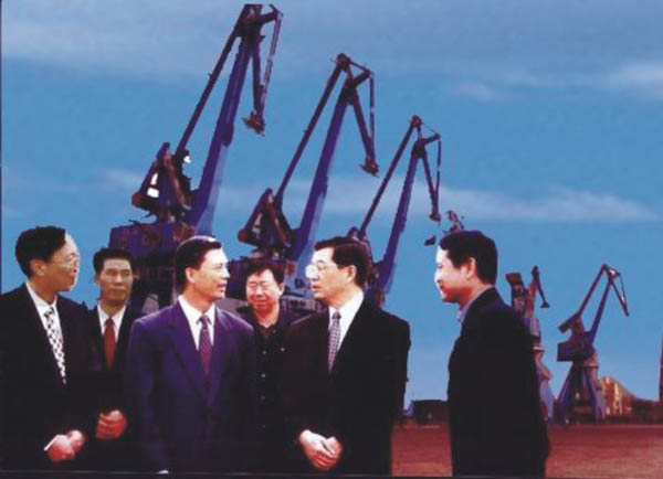 2005年10月,时任中共中央总书记胡锦涛,视察广西防城港岳泰泰港实业仓储项目工程工地。