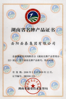 湖南省名牌产品证书