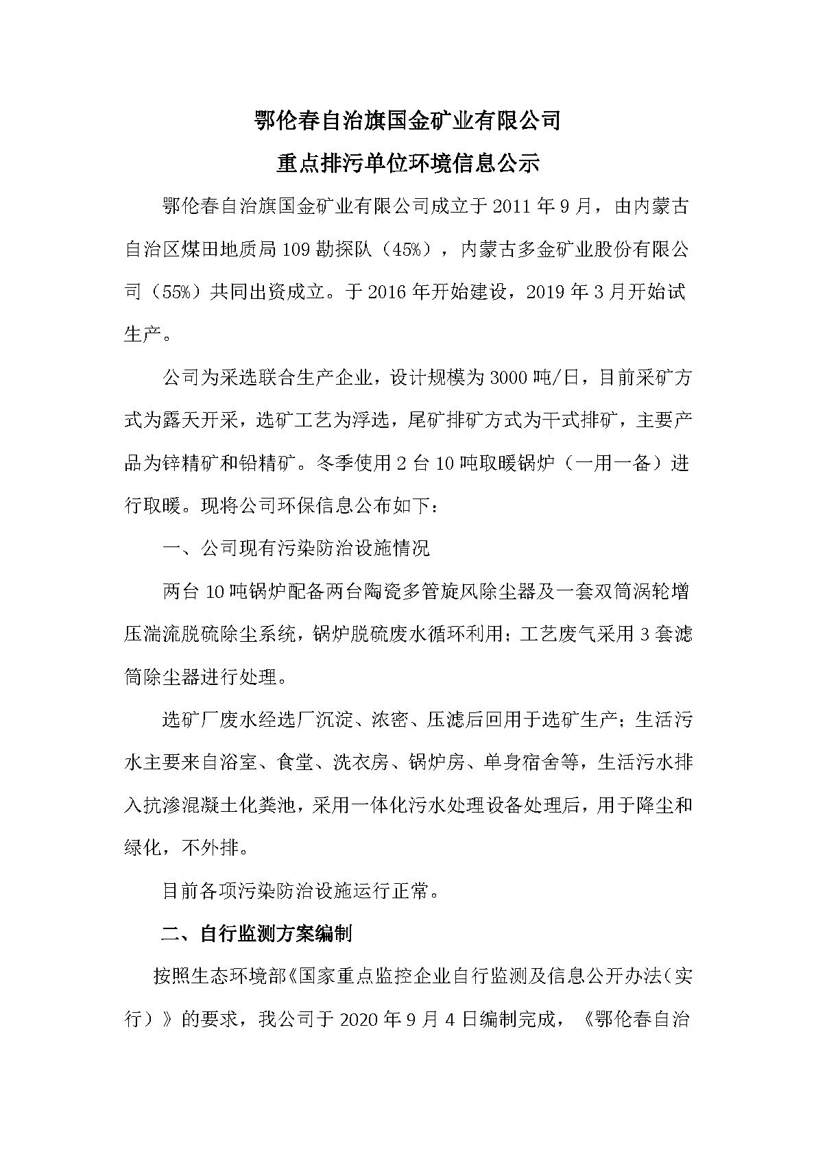 鄂伦春自治旗国金矿业有限公司重点排污单位环境信息公示